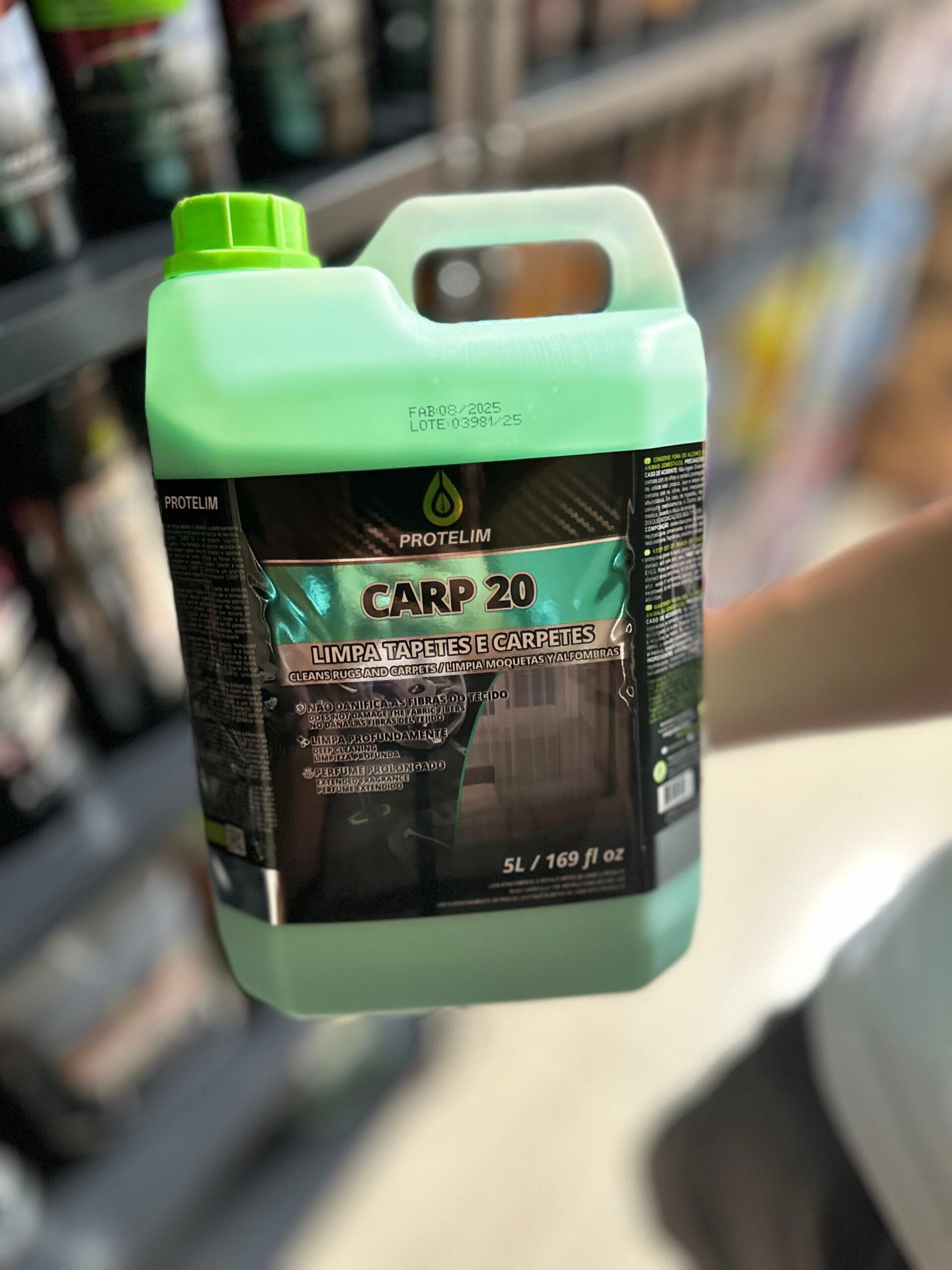CARP 20 é um limpa tapetes e carpetes cuidadosamente elaborado para auxiliar você no processo de limpeza desses tecidos. É um produto líquido, concentrado, possui uma formação de espuma abundante, que permite uma lavagem quase seca de carpetes e tapetes. Além de limpar, reaviva as cores, protege as fibras mais delicadas que compõem os carpetes e tapetes. Devido a sua formulação concentrada, possibilita um grande rendimento e, assim, evita o desperdício do mesmo.