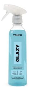GLAZY é um produto 4 em 1, desenvolvido para vidros em geral, que limpa, protege, condiciona e atua como redutor de riscos. Diminui as chances de riscos causados por limpadores de para-brisas e movimentações de riscos laterais, deixando um toque liso e aspecto de vidro novo.