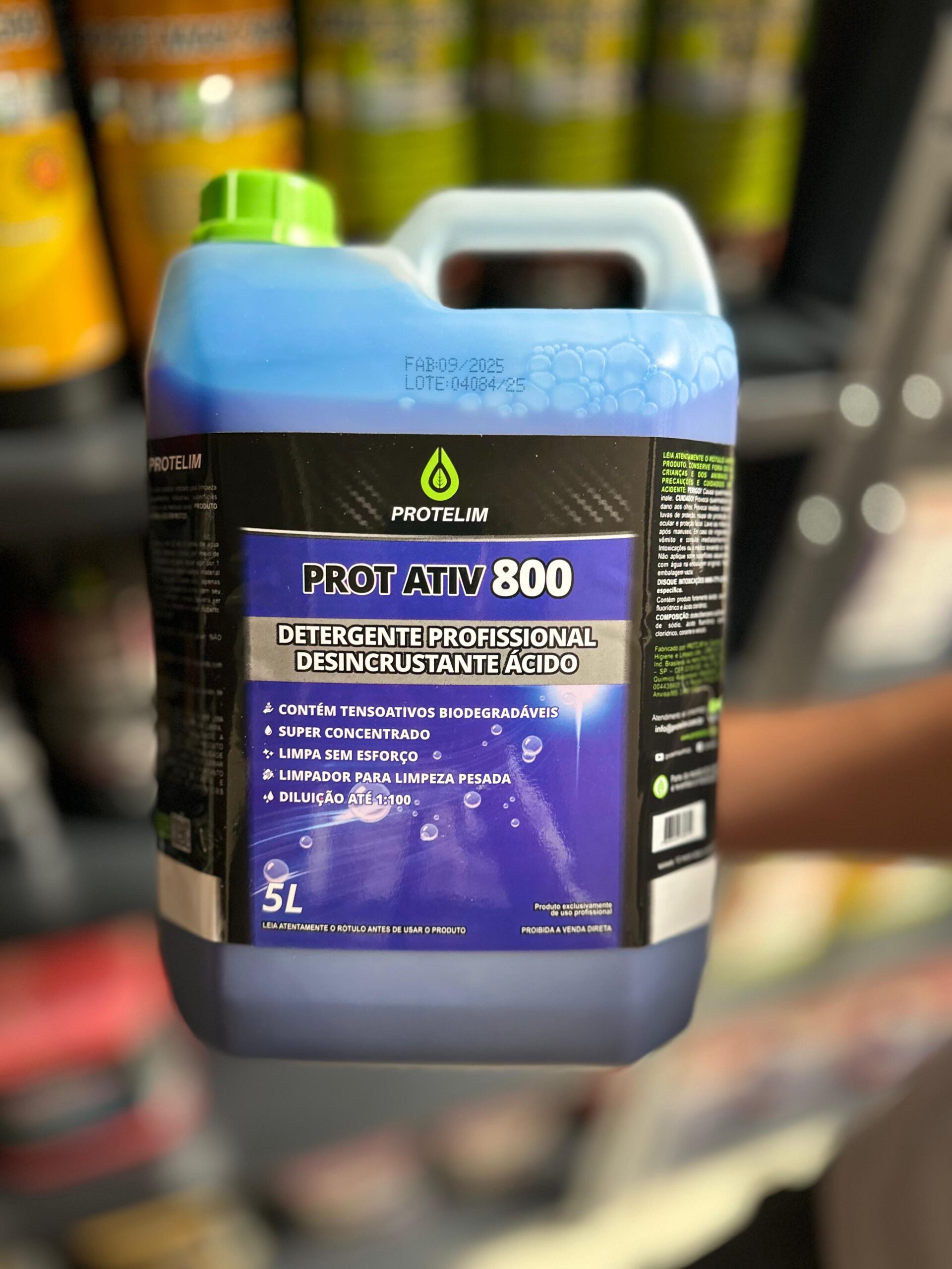 PROT ATIV 800 é um detergente desincrustante ácido, super concentrado, para remoção de óxidos e abrilhantador de metais. Pode ser utilizado em motores, rodas e chassis de veículos em geral.